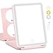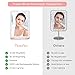 💡【3 Colors Touch Screen Lighted Mirror】Compare with the traditional makeup mirrors,We've done upgrades in power and functionality.Our travel mirror with 24 LED lights has 3 color lights and Touch Screen Stepless Dimming functions.Lighting color modes and brightness both control by the touch screen switch.Double touch the switch to select 3 color lighting modes:white lights,warm lights and natural lights,and just long press to dim or bright the led lights between 100%,50% and 10% brightness.