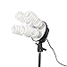 It produces an even, soft, and powerful lighting source all in one head. Each 5 socket head has five light sockets that use 5500K Daylight fluorescent bulbs creating a balanced light source for your photography or video shoots.