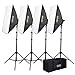 Contents: 4x 5-socket heads, 4x 20"x28" softboxes, 20x 45W lamps, 4x 7'6" light stands, 1x carry bag