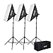 Softbox Studio Lighting Kit Contents: 3x 5-socket heads, 3x 24"x36" softboxes, 15x 85W lamps, 3x 7'6" stands, 1x carry bag