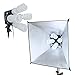 (2) x UMBRELLA-STYLE SOFTBOX 24 X 24inch softbox with white square diffuser for eliminating shadow and softening light stream; made of black nylon cloth with highly reflective silver internal face inside to direct the light toward the object; few seconds to put up and fold soft box like umbrella; quick operation suitable for high-frequency moving studio setting