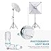 (2)UMBRELLA WITH BULBS: The 33inches white translucent umbrella can soften, broaden and diffuse the light output of any tungsten or studio flash source. Each 45W day light studio light bulb is equivalent to a 200W regular incandescent bulb. 5500K fluorescent spiral bulb generates a close match to natural daylight and a crisper view of the items being illuminated
