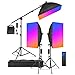 PACKAGE INCLUDES: (3)Softbox with 48W Dimmable LED Light Head, (3)Aluminum Alloy Light Stand; (3)Power Adapter with US Plug; (9)Color Filter; (3)White Diffuser; (1)2.4G Remote Control; (1)Boom Arm; (1)Large Carrying Bag; (1)Empty Sandbag; Perfect to use in portrait/product photography, live show, YouTube video shooting, home studio, outdoor shooting, group shots, etc