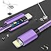【High quality lightning cable】: The USB C-to-lightning cable is made of nylon material, which can provide additional protection and durability. It is more durable, stronger and tangle-free than the ordinary iPhone charger cable. After more than 15000 strict tests of bends, it can withstand the daily connection requirements and long-term use,3 Pack(Pink/Purple/Blue) 6 feet long, convenient to charge your device in bedroom, sofa, office, travel.
