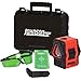 KIT INCLUDES: This 360° Laser Light Kit is equipped with 3 green beams – one horizontal and two vertical; li-ion rechargeable battery pack for long battery life.