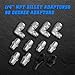 PACKAGE INCLUDE - 2 x 52 inch 3/8 I.D. Stainless Steel Braided Hoses; 4 x AN-6 flared to 1/4 In NPT billet adaptors; 2 x AN-6 flared to 3/8 In NPT billet adaptors; 2 x 90-degree AN-6 inverted flare to AN-6 flare billet adaptors.