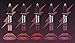 A collection of six velvety lip creams in various shades of red.