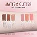 【Matte & Glitter】This liquid eyeshadow features a dual-ended design. The velvety matte finishes combined with glittery, shimmer shades, suit all skin tones. You can be used matte alone or with a mix of glitter to create shining eye looks! From naturally daily work makeup to charming smoky makeup, compliant your all makeup needs!