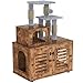 🐾SOLID STRUCTURE CAT HOUSE: The cat tree litter box is made of high quality particle board. The cat crawl post is made of plush fabric, sisal, and fluffy balls. The surface of cat litter cabinet is stain-resistant, easy to clean the water and cat hair. The soft plush covering on the cat tree makes it easy to rest and sleep. The modern design with vintage brown goes well with various home furniture with a maximum load capacity of up to 220 lbs.