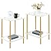 [Simple & Modern] The stylish 2-tier nightstand is made of gold polished metal frame, tabletop is made of rectangle MDF board and finished with a beautiful glossy white faux marble with gray veining. This skinny bedside table has a clean and understated design.