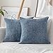 Texture: Jeans blue chenille throw pillow cover is not only a plain color jeans blue, but has stripes of black and white thread throughout it that make it unique.