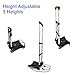 【Telescoping Handle】: The telescoping handle has three different height arbitrary switching. Lift the telescoping handle up and push the button on the handle, it can be extended from 15.35 to 34.45 inches, you can choose the proper height according to holding small or larger-sized stuff. In addition, the hand truck dolly comes with two elastic ropes, which are great for safely carrying large boxes, heavy items, luggage, groceries, etc