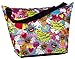 Roomy tote is constructed from polyester with a clear plastic overlay so that it's both durable and easy to keep clean