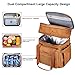 [Large Capacity] The total capacity of this lunch pail is 15L(10.2X7.5X12.5in). The main pocket is designed a dual compartment structure, the top compartment capacity is 3.6L(10X7.5X2.95in), which can hold 5 cans of 330 ml, and the bottom one is 11.58L(10X7.5X9.4in), which can hold 22 cans of 330 ml or 3-4 adults sized meal containers . With 3 side pockets and 1 inner net pocket, these four pockets can be used to hold ice bags, tableware, mobile phones, water bottles and other items.