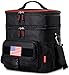 ❄Fits 30 Cans + Insulated Bottle Pouch: This lunch bag can store 30 cans with ice packs, or food for the whole family. It has 9 zipper pockets, with mesh and expandable side pockets for versatile storage. The snap-on Tactical MOLLE Water Bottle Pouch is lined with food-grade aluminum foil to keep your bottle cold, with a zipper pocket for your phone and keys. Also, the front of the lunch cooler contains a patriotic USA flag badge, plus a tactical MOLLE strap system for clip-ons.