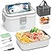 🍱【80W FAST HEATING】Compared to ordinary heated lunch box, our electric lunch box is heated by an upgraded 80W power supply with PTC's original constant temperature heating technology, low heat consumption heating more evenly, can be quickly heated to the optimal temperature within 15-25min, while always maintaining a constant temperature to keep your food hydrated. If your food is just taken out of the refrigerator, it needs to be heated for extra minutes. Tip: It is advised to add some stock or water to the food so that it heats more evenly.