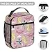 [Plenty of Space] The pink and white gradient dinosaur skeleton lunch box measures 8.27 x 4.33 x 10.24 inches (L x W x H), has a main pocket, a zipper front pocket and a side mesh bag with a zipper mesh bag inside. This dinosaurs lunchbox has plenty of room for food, fruit and drinks. You can also store your cell phone, wallet, keys, cards, chargers, small napkins, and any number of small items.