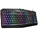 Rainbow Backlit Keyboard:the gaming keyboard can bring you a colorful typing experience and game atmosphere at night because ofthe rainbow backlit.FN + Scroll Lock = turn on/off backlit. UK layout, 104 keys, 19 keys non-conflict,12 multimedia keys,50 million click keystrokes life.USB cable:1.5m