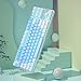 [Ergonomic mechanical keyboards]: stylish blue white mash up 75% layout, come with extra 16 purple keycaps, double-shot injection non-slip suspension keycap, splash-proof design, durable metal panel enough to protect it from scratch, also firm kickstand feet adjustable typing angle.