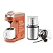 【A QUICK COFFEE MAKER & GRINDER】800W heating element with rapid brewing technology within 3mins by blue indicator light flash.Multifunctional grinder with 200W motor and stainless steel sharp blades,grinding coffee powder of different thickness for espresso and french press or perfectly blends chutney and pesto for daily cooking.