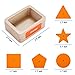 🐟UNIQUE DESIGN - Our shape sorting game consists of different brightly colored shaped wooden boards, each shape has a corresponding one box. Your child can use the special rods to grab the shape squares and put them into the corresponding boxes, helping them distinguish colors, letters and numbers from a very young age.