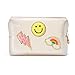 Cute Design: The toiletry bag is preppy patch theme, which is in shell white color. There are three trendy and lovely patterns - smile, lightning and rainbow. The interesting patterns and the nice color can make you in good mood and highlight your personal character.