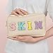 【Perfect design】: This preppy make up bag has chenille letter patches with gold frame. The chenille letters are made of rich fluff. Preppy cosmetic pouch will stand out among various cosmetic bags when matched with letter patches of various colors.