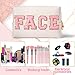 Fashion Chenille Patch Design: Our cosmetic bag with shell gold color and has big ‘FACE’ pink chenille letter patches with gold trim sewn in the middle. This cosmetic bag uses a minimalist design to show its fashionable and elegant atmosphere, giving you a sense of vitality and fashion.
