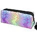 VERSATILE -- Not only can be used as a pencil case, but also a makeup bag, cosmetic bag, phone bag, party evening bag, travel bag, purse, wallet, small gadget bag organiser, etc. Zipper closure makes your stuff more safer and sequins design makes you became eye-catching. Large Capacity; Spacious room enough to store more than 50pcs pencils. Foldable design; when empty & folds up, not takes up space.