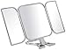 MAKES GROOMING EASIER THAN EVER: Three-way vanity mirrors are a genuine lifesaver when it comes to applying makeup, shaving your face, or cutting your hair. Angling the side panel mirrors gives you a 360-degree view that eliminates blind spots, guesswork, and frustration that comes with tending to the back of your head with scissors or razors.