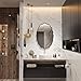 【FIT SIZE】: The size of this bathroom mirror is 15.7"L x 9.8"W inches and the weight is 1.51 pounds. This aesthetic mirror may feel a little small hanging on the wall, but it fits us well, we can use it more intuitively. The weight of the vanity mirror is very light, which is convenient for us to carry and place at will.