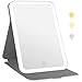 3 Color Lights Travel Makeup Mirror: Our lighted travel makeup mirror comes with 3 color lighting modes: white, warm, natrual. Whatever working, date or party, you can select different lighting for makeup for various occasions.