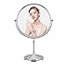 LARGER SIZE: 8 in diameter double faced mirror glass, 14.25 inches Height. Swivel standing mirror head with 360 degree rotation