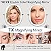 ✔️【7X High-Definition Mirror & Brightness Adjustable】Double Sided 1X &7X Magnification LED Makeup Mirror can make sure every detail is in place, you can indulge in facial makeup, hair makeovers and skin care. The LED tabletop makeup mirror has 3 color lights - warm, cold, and natural, choose the light that suits you. Long press the button to increase/decrease the brightness of you personal mirror, choose the brightness you like.
