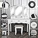 【8 DIMMING BULBS & 3 COLOR LIGHTING MODES】This vanity table set has an LED illuminated vanity mirror, which have adjustable brightness and 3 lighting modes. Touch the switch to adjust the modes: (warm/natural/cool). 8 LED dimmable bulbs provide your best beauty station with sufficient and adjustable brightness, by which you can view your makeup details in various lighting situations. LED lights also protect your eyes.