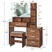 【TOP QUALITY MATERIALS】The dressing table is made of sturdy E1 grade environmental MDF, solid wooden table and bench legs, premium silence drawer slide, foam with 100% polyester seat cover, EVA anti-slip mats. Overall dimenstion: 31.5" x 15.75" x 53.35" (L x W x H)