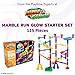 ENDLESS EXCITEMENT: Introducing our latest Marble Run Set - a 115-piece toy that will take your child's creativity and imagination to new heights! With 70 See Through Marble Run Pieces, your child can witness all the thrilling action as the marbles zoom down the track, through twists and turns, and even up a tower elevator. The glow-in-the-dark feature adds an exciting twist to nighttime playtime from building intricate structures to competing in marble races with friends.