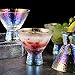 🥃 OLD-WORLD STYLE WITH A SLEEK, MODERN TWIST: These 8-ounce martini glasses have a tapered silhouette with a stylish colorful base and black band. These dessert cups are carefully crafted from lead-free glass and come six to a set.