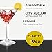 Classy Modern Design: This set of 2 modern-style gold-rim cocktail glasses has a stunning design making our crystal cocktail glasses unique for any event or special occasion. The sophisticated design makes a great addition to your bar cart.