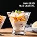 🍸Dessert Cups with Spoons: Our dessert cups can be used for all types of food presentations, including desserts, puddings, mousse, sorbet, tiramisu, cocktails, fruits, cakes, ice cream, smoothies, jelly, yogurt, and much more. The small spoon makes it easy to scoop the dessert out of the dessert cup and enjoy it slowly.