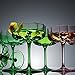 A set of six mouthblown and hand cut wine glasses in hues of Red, Orange, Pink, Green, Blue, and Purple. Each 7 oz glass is accented with a colored hue for added elegance. Colored glassware brings a modern touch to your home decor. Beautiful colors, detailed lines and a glossy finish make these glasses something to treasure. These beautiful hand-blown glasses with intricately cut details add a modern and elegant touch to your tableware.