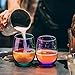 👍【Iridescent Wine Glass】: The wine glass presents a mixed color of purple, red, yellow, blue, green, orange, and pink, showing a perfect color rainbow under the light. Iridescent Wine Glass brings a good moment for your family.