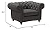 This lovely chair has the low button-tufted back, scroll arms, and short legs that are the hallmark of the classic chesterfield style. Whether as a statement piece or part of a living-room suite, this chair will be a welcome addition to any decor.