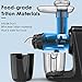 Safe and Silent Operation: The slow masticating juicer with a small feeder chute prevents kids from getting injured when extracting the juice and also helps remove seeds to reduce its bitter taste. Additionally, the electric juicer runs on a 60 dB low-speed silent motor and offers quiet operation