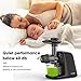 【Food Grade Materials and Quiet Motor】Slow juicer operates at low speed silent DC motor equipped with intelligent protection chips, making it stop automatically for every 20 minutes' operation. 150W motor- less than 60 decibels, So it doesn't bother your neighbors and makes you feel comfortable when you juice. All detachable parts are made of high quality food grade antioxidant material, ensure you enjoy a quiet environment and healthy life when juicing.