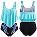 Junior Bikini Style:Ruffles top and print high waisted bottom were designed to make you look slim and feminine.