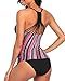Modest Swimwear Bathing Suits: Loose fit swim suits top matching with the striped high waisted bottom is perfect for athletic actives. The scoop neck of the swim top is flattering, full coverage and still looks charming.