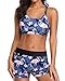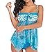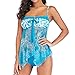 2 Piece Tankini Bathing Suits for Women: Blouson tankini top + bikini bottom, geometry floral printed. Wireless, removable built-in bra supporting a soft and comfortable fit.