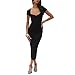 Women’s Sexy Short Sleeve Sweetheart Neckline Ribbed Knit Elegant Evening Midi Dress