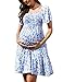UNIQUE DESIGN: Women's maternity casual loose flowy swing shift dress. deep v neck, ruffle short sleeve, boho floral printed, ruffle hem, tiered design, flowy pleated dress.